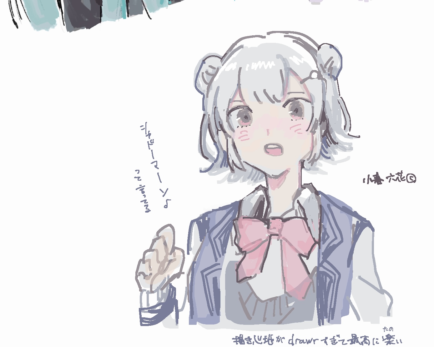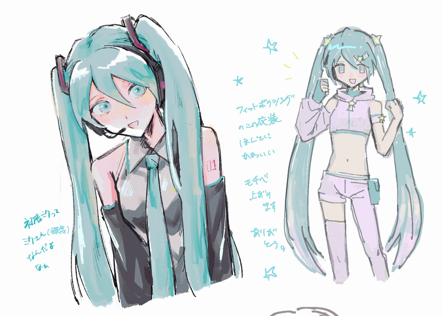 フィットボクシング(ミクさんver.)の衣装がかわいくて助かってるのと、SynthesizerVの小春立花ちゃんの歌が好きだ〜のらくがきでした