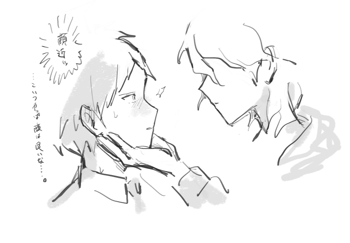 日向がスキンシップに慣れてない感じの狛日です。4枚目はただのセクハラ。眠い時に描いたので気にしないでください。