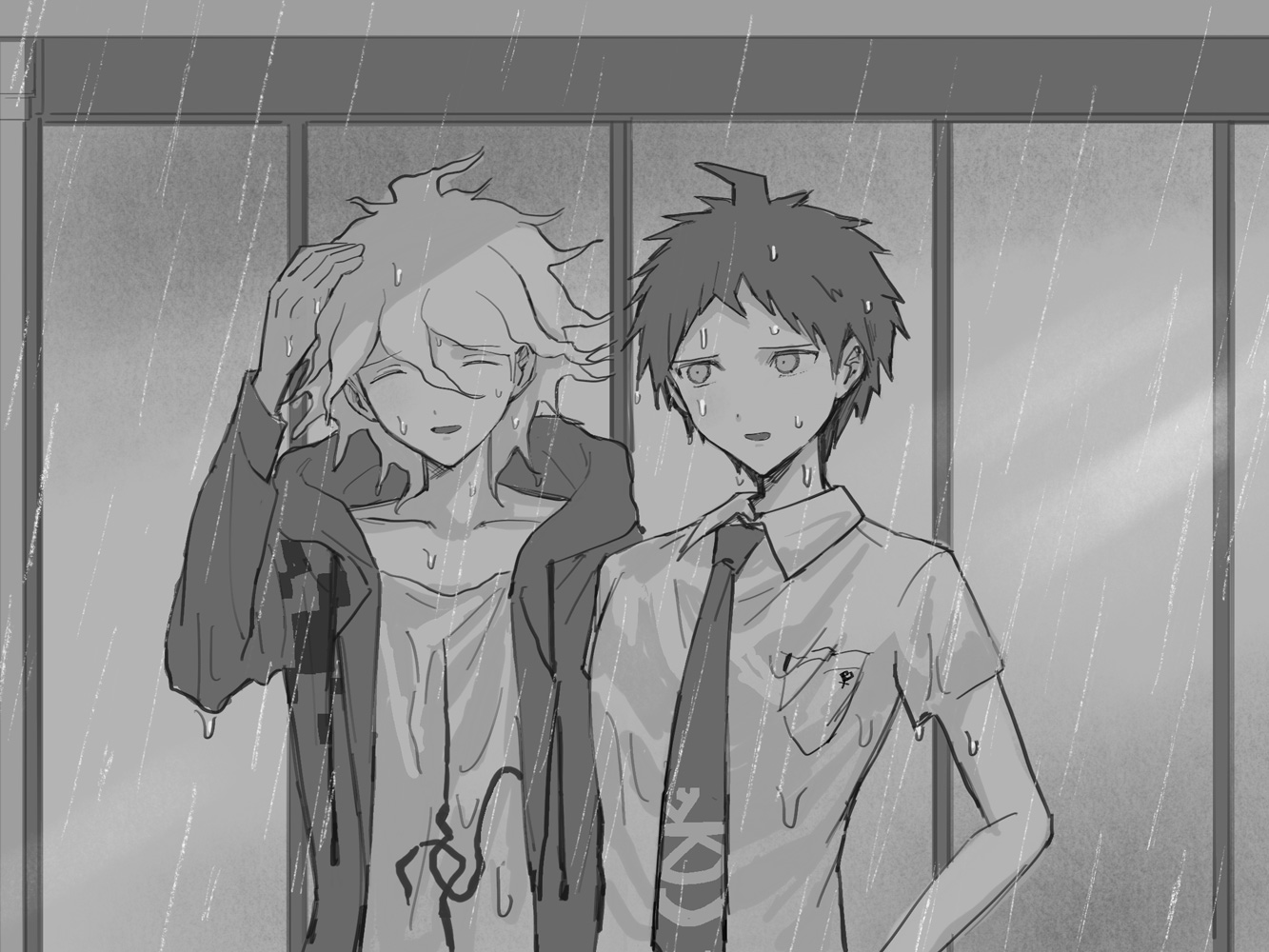 (1,2:ほっぺにチューする狛日、3:台風でビチャビチャの狛枝)